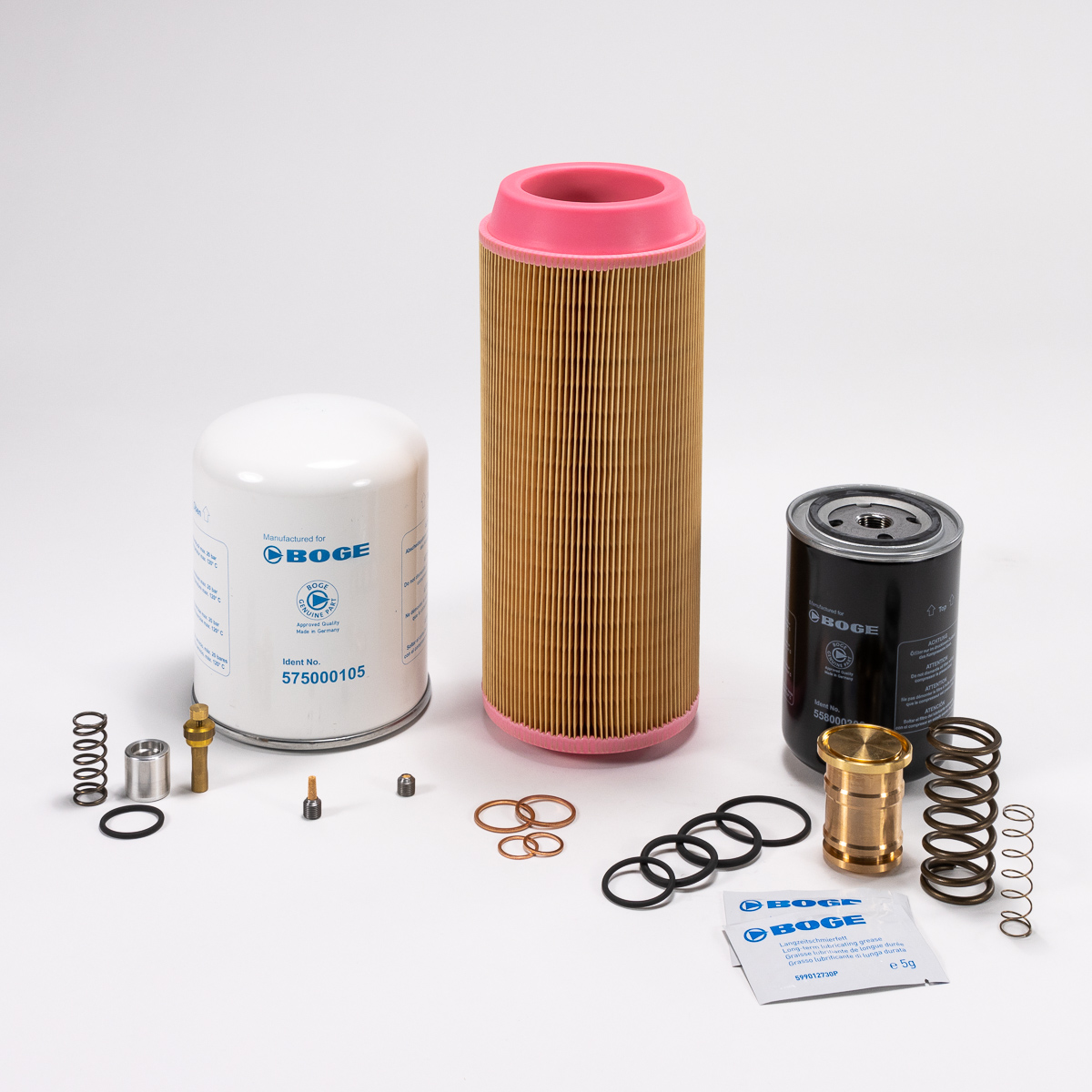 Cairpac kits provide technicians with everything needed to service compressors. With BOGE Cairpac, you get a complete package of carefully selected components that fit perfectly together. This makes it easy to replace wear parts and ensures the compressor operates optimally after service.